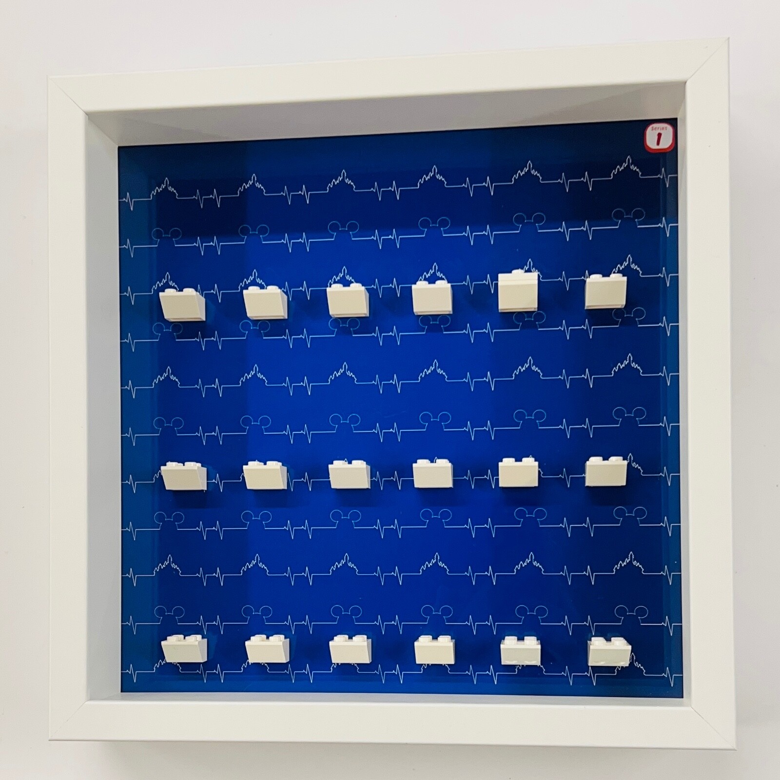 Our bricks are placed on 2mm thick precision laser cut crystal clear acrylic, with the background display placed behind this.