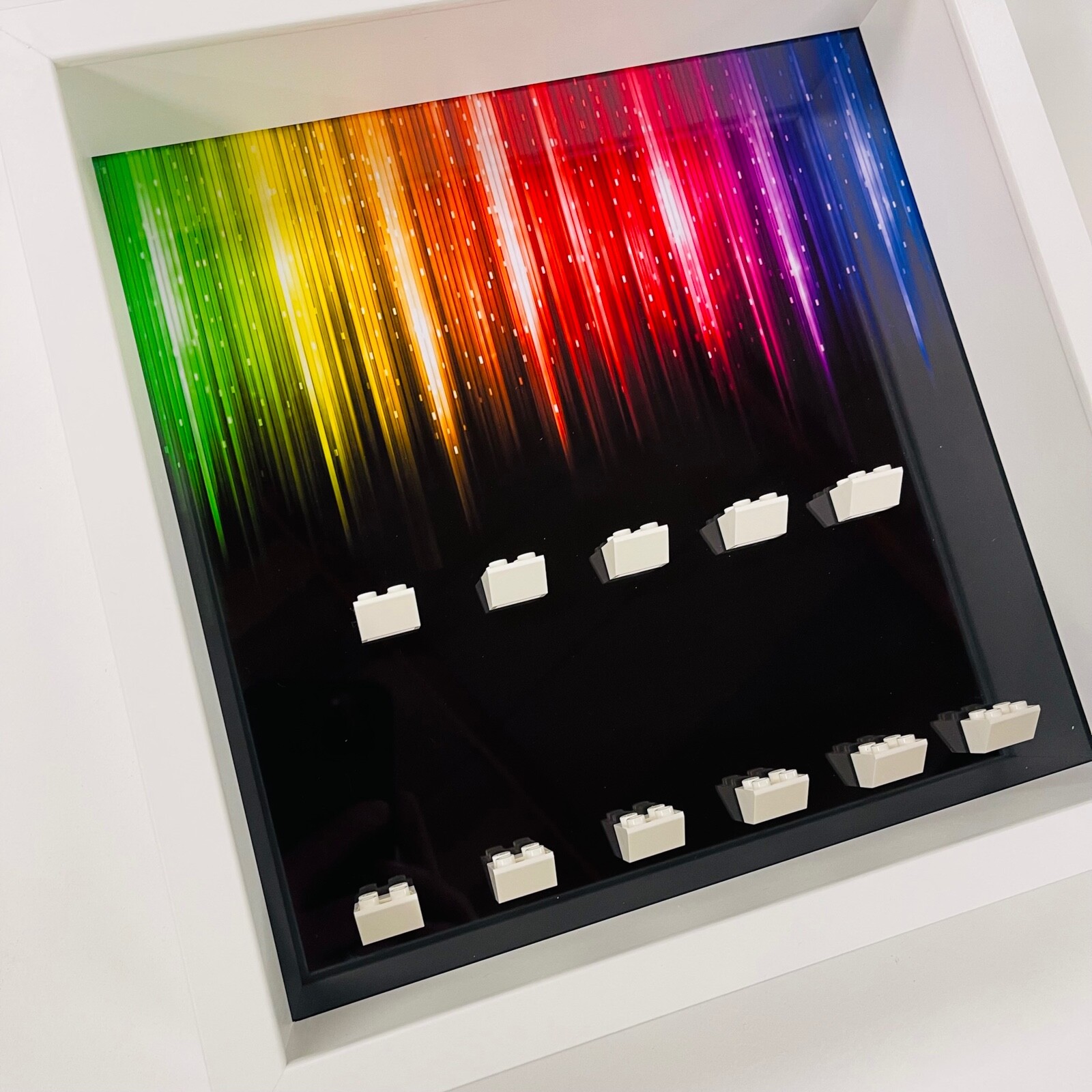 Our bricks are placed on 2mm thick precision laser cut crystal clear acrylic, with the background display placed behind this.