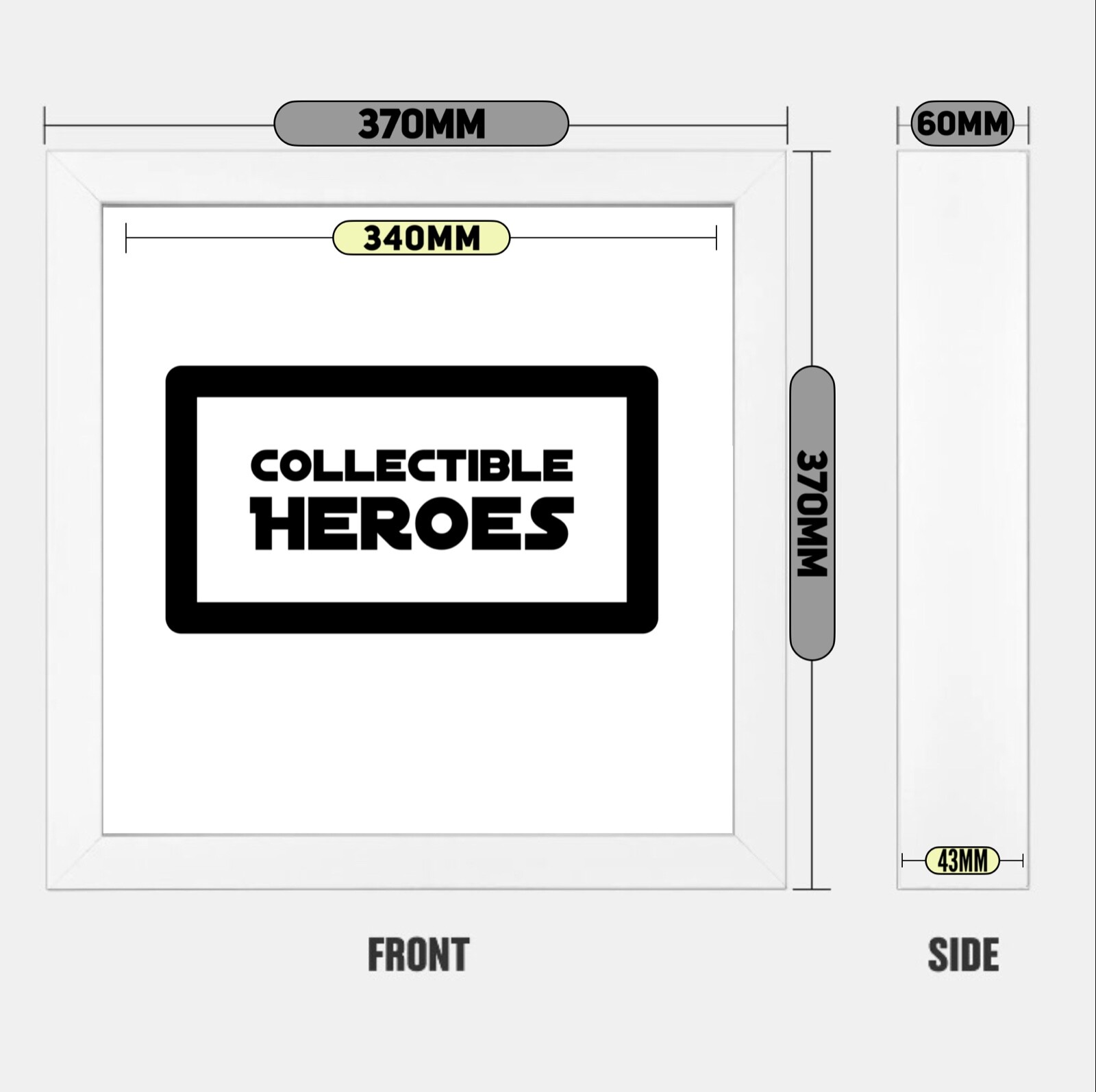The frame includes clear front to protect your display which is more child safe and reflects less than glass. The clear front can be removed for easy access to your collection if required.